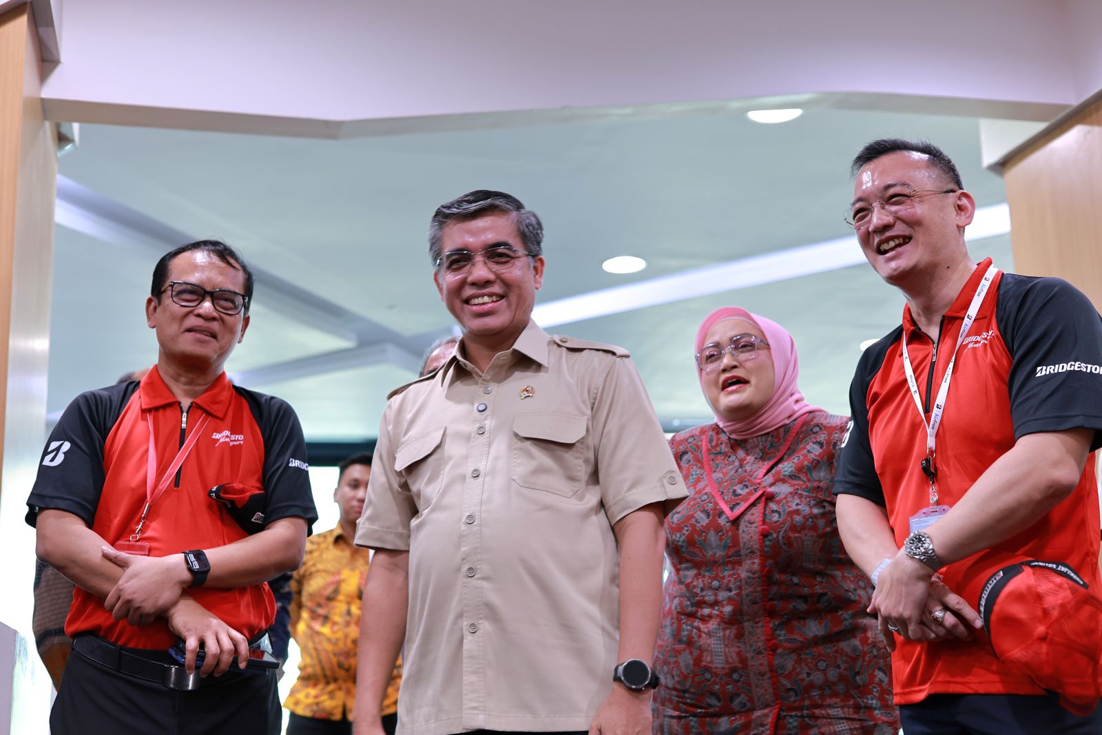 Sementara itu, Presiden Direktur Bridgestone Indonesia, Mukiat Sutikno, mengapresiasi kehadiran Menaker dan perhatiannya kepada Bridgestone Indonesia serta memberikan motivasi ke seluruh karyawan.